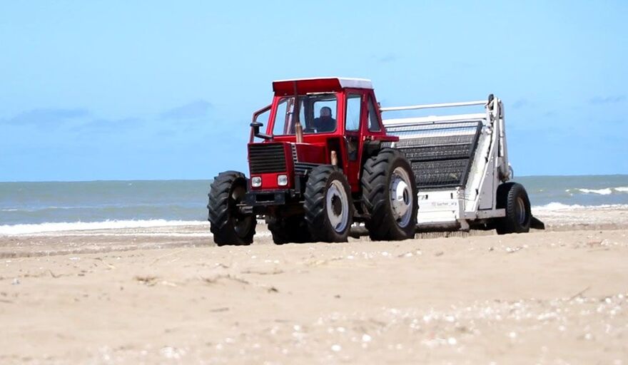 La llamada “barredora de playa” está diseñada con un sistema de rastrilleo que limpia grandes superficies de forma rápida y abarcativa.