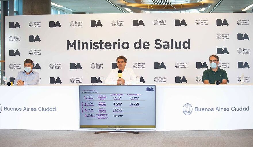 CIUDAD DE BUENOS AIRES (ANDigital) El ministro de Salud porteño, Fernán Quirós, junto al secretario de Atención Primaria, Gabriel Battistella, y el subsecretario de Planificación Sanitaria y Gestión en Red, Daniel Ferrante, dieron detalles este lunes sobre el avance del plan de vacunación contra el Covid-19
