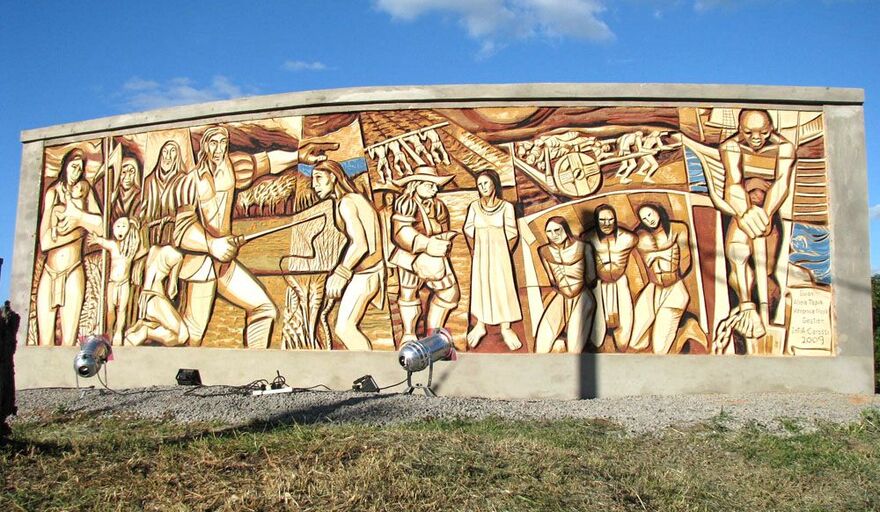 Cuatro murales emplazados en el sitio -diseñados por los artistas plásticos José Kura y Daniela Almeida, y guionados por la museóloga Verónica Noya y la arqueóloga Alicia Tapia- relatan momentos claves en la historia de esas poblaciones.