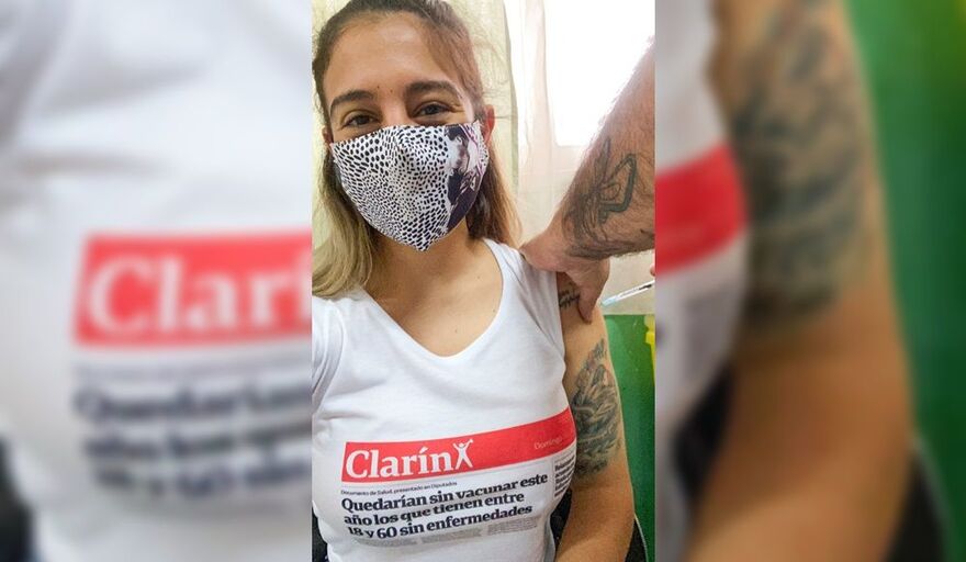 Sin embargo, el caso de una mujer que recibió su segunda dosis con particular remera, se convirtió el viral. Resulta que, a la hora de asistir a la posta para ser inoculada, la joven que no tenía enfermedades prexistentes, decidió ponerse un atuendo excéntrico con la tapa de una edición del diario Clarín del mes de enero de este año.