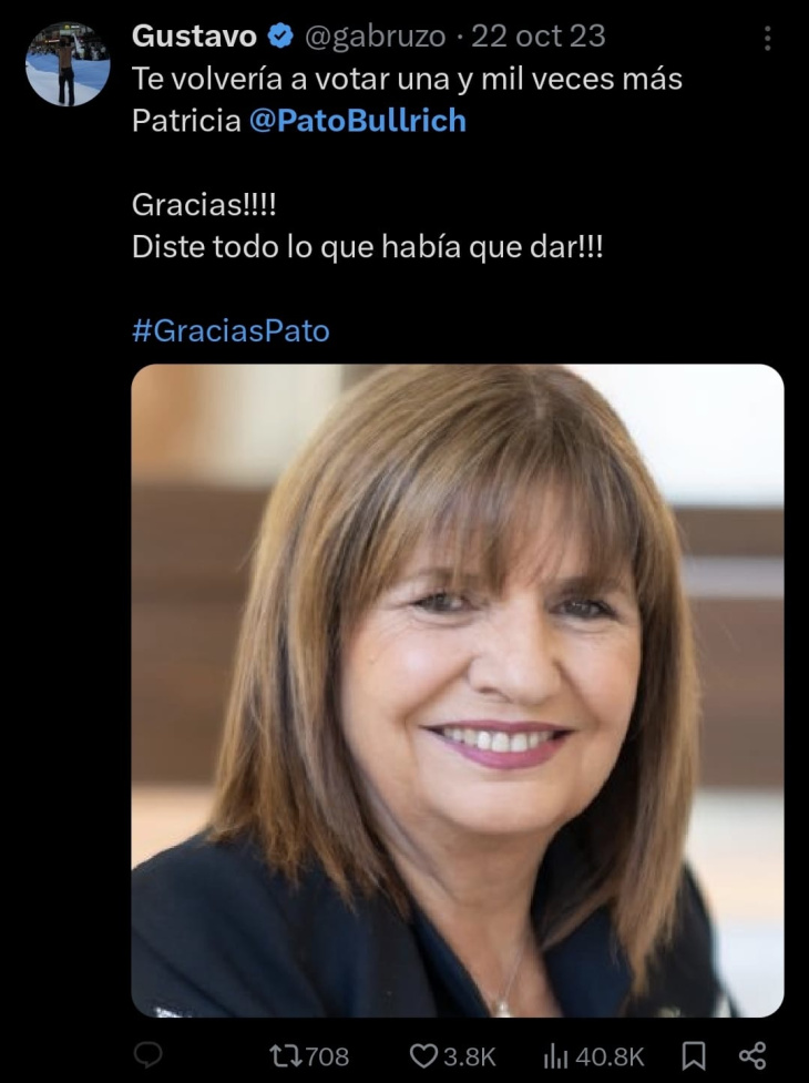 Sin embargo, los usuarios rápidamente le recordaron a Bullrich que Bruzzone se definía como “macrista” en las redes sociales y hasta la había votado en las últimas elecciones.
