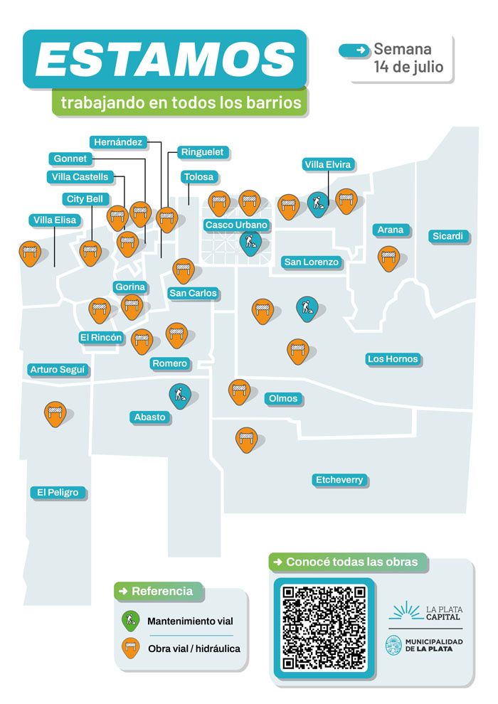 La Municipalidad de La Plata informó que, en el marco del avance de múltiples obras en diferentes zonas del partido, se implementarán cortes de tránsito y desvíos programados en los próximos días.