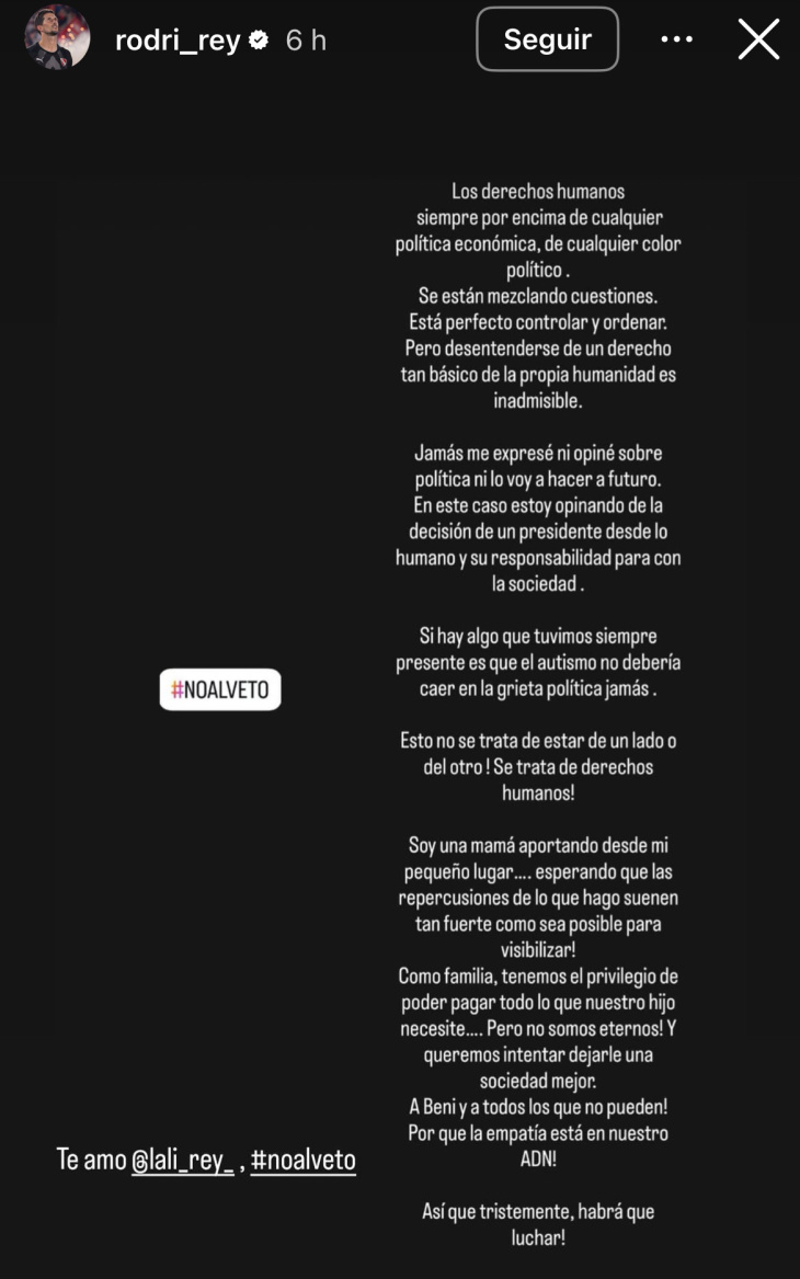 El arquero de Independiente, Rodrigo Rey, cuestionó en redes sociales el veto del presidente Javier Milei a la Ley de Emergencia en Discapacidad.
