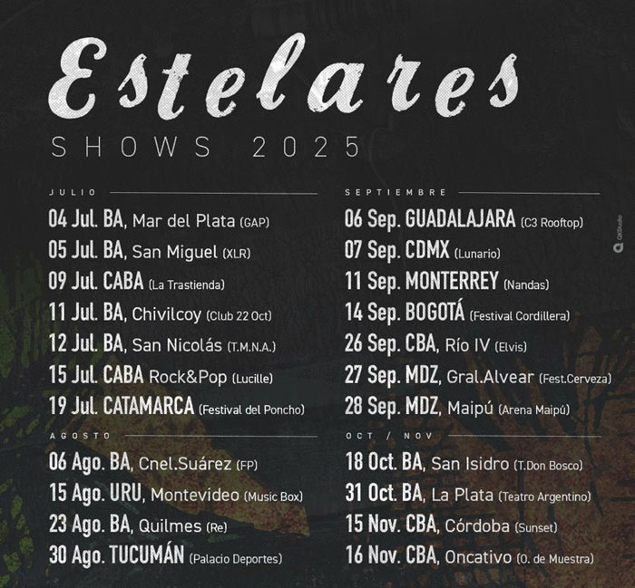 Las próximas fechas del tour marcan, entre otras, paradas en el Club Re de Quilmes (viernes 23 de agosto); Teatro Don Bosco de San Isidro (sábado 18 de octubre); Teatro Argentino de La Plata (viernes 31 de octubre) y Teatro Vorterix de Buenos Aires (viernes 7 de noviembre).