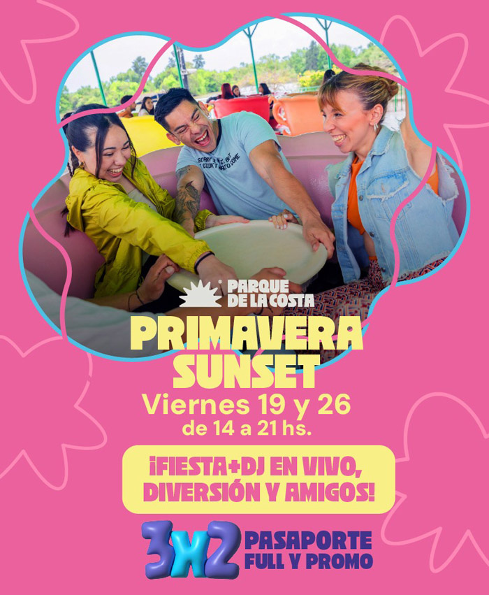 Durante septiembre, además de su tradicional apertura de sábado y domingo, las puertas del Parque de la Costa se abrirán los viernes 19 y 26 para disfrutar un Primavera Sunset en horario especial de 14 a 21 horas.