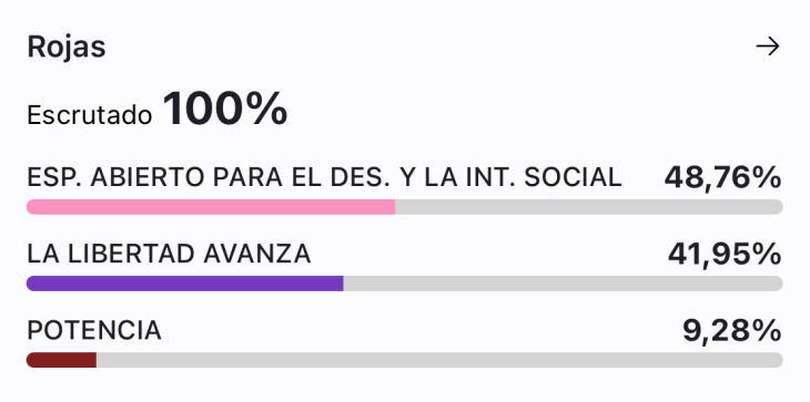 Con el 48,7 % de los votos, el espacio Hechos se quedó con el primer lugar en la categoría concejales, superando por casi siete puntos a La Libertad Avanza.