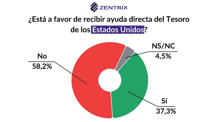 El 58,2 % de los encuestados se manifestó en desacuerdo con recibir asistencia, frente a un 37,3 % que la aprueba. Los datos relevados mostraron una marcada polarización según la afinidad política: el 69,7 % de los que votaron a Javier Milei en 2023 se declaró a favor, mientras que el 97,4 % de los votantes de Sergio Massa se pronunció en contra.