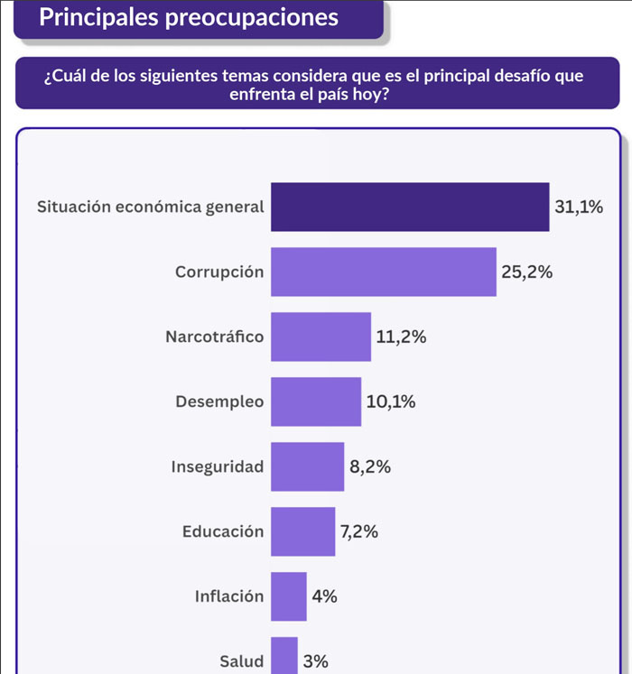 En conjunto, el cuadro describe una sociedad tensionada por la persistencia inflacionaria, la desconfianza institucional y un clima económico adverso, donde la agenda pública se articula alrededor del malestar con el bolsillo y la desilusión con la dirigencia.