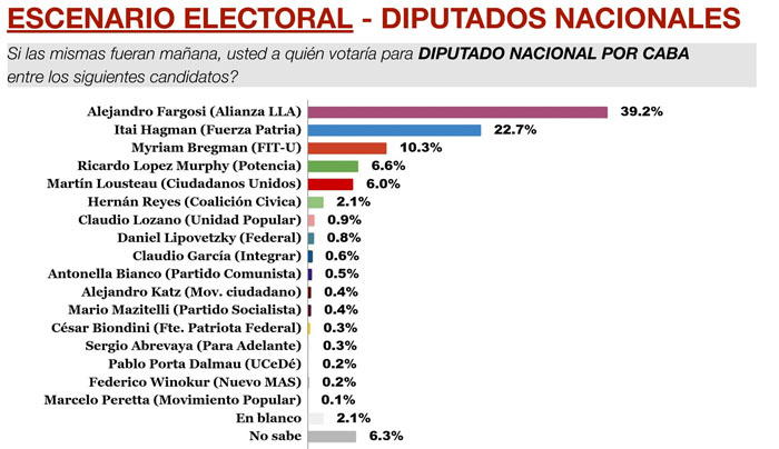Una reciente encuesta en la Ciudad de Buenos Aires de cara a las elecciones nacionales de medio término, ratifica el favoritismo de La Libertad Avanza, consolidando una importante ventaja por sobre Fuerza Patria.