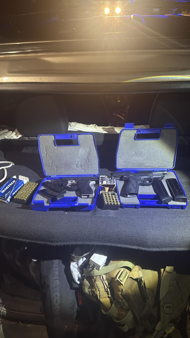 Entre los rodados interceptados, se encontraba un Chrysler PT Cruiser (KFO 828) con tres ocupantes Maximiliano Nahuel Tóbares, Ever Hugo Benítez Penayo y Nicolás Lionel Giani Frontera, en cuyo interior se halló una pistola Taurus calibre 9 mm. En otro vehículo, una Ford Ecosport (HXK 354), viajaban tres personas oriundas de Córdoba: Guido Cuello, Diego Hernán Cardo y Noelia Florencia Flores, portando dos pistolas Bersa de distintos calibres.