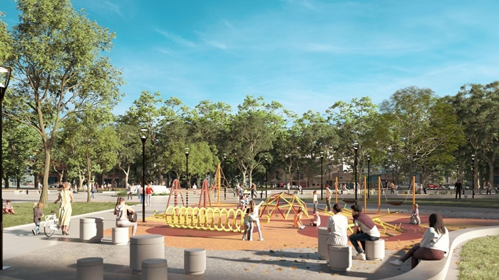 El proyecto incluye la reubicación de monumentos, la optimización de espacios de esparcimiento y descanso, la incorporación de zonas de juegos infantiles y deportivos, el rediseño de áreas verdes, la colocación de panes de césped, la construcción de nuevos sumideros y el reacondicionamiento y recalce de cordones.