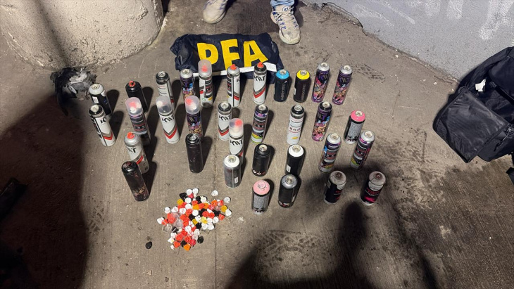 Durante la requisa, y ante la presencia de testigos, se secuestraron 33 aerosoles de pintura de distintos colores y 40 caps, elementos comúnmente utilizados para realizar intervenciones rápidas sobre vagones y paredes de estaciones. Todo el material quedó incorporado como evidencia en la causa.