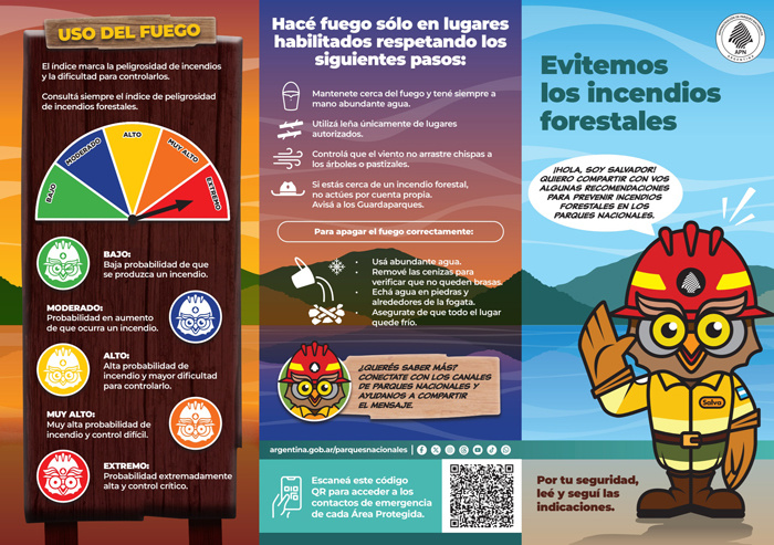 En el marco de las acciones de sensibilización que impulsa la Administración de Parques Nacionales (APN) para la temporada de incendios 2025-2026, se están distribuyendo en las portadas de ingreso, centros de informes y bases de prestaciones turísticas más de 50 mil folletos informativos destinados a fortalecer la prevención de incendios forestales.