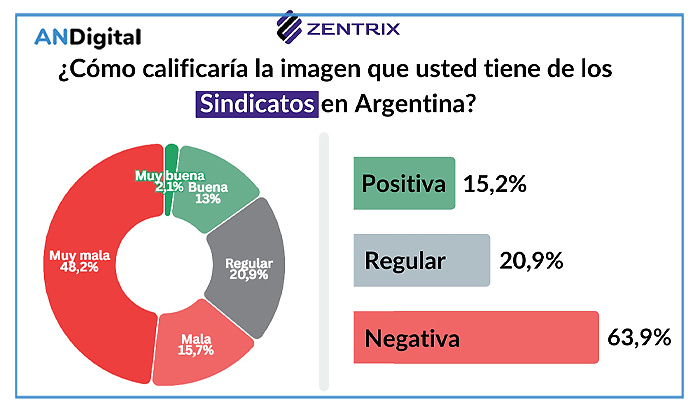 En este marco, los datos del MOP de Zentrix (noviembre 2025) muestran una valoración mayoritariamente negativa: el 64 % de la población declara tener una imagen negativa de los sindicatos, mientras que solo el 15,2 % expresa una imagen positiva.