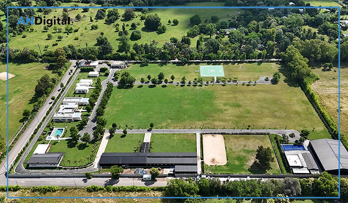 La propiedad de diez hectáreas posee más de 105 mil metros cuadrados y tiene piscina, cancha de tenis, áreas deportivas y hasta un sector acondicionado para el aterrizaje de helicópteros.
