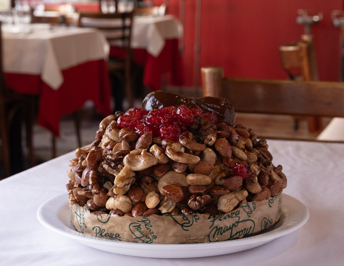 Sin ahondar en los vericuetos de esa receta con raigambre italiana, describe que el pan dulce lleva “almendras, nueces, cajú, fruta escurrida, pasas de uva y, por supuesto, la manteca, que le da el desarrollo característico a la masa”.