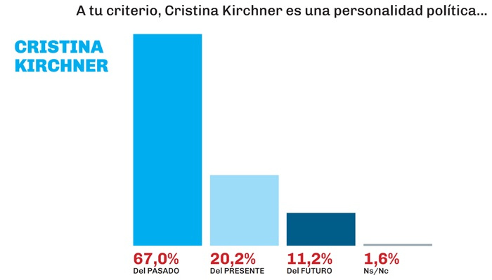 En el caso de la titular del PJ nacional, se consultó a la ciudadanía por las consideraciones en cuanto a si es una personalidad política del pasado o del presente, prevaleciendo claramente la primera de la opciones 67 a 20,2 %, en tanto que la opción “del futuro” llegó a 11,2 por ciento.