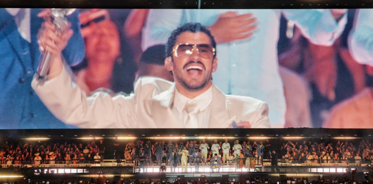Minutos antes de las 21, las luces se apagaron y el estadio quedó iluminado únicamente por los celulares. Tras una breve intro audiovisual, Bad Bunny apareció en escena con un traje beige y lentes oscuros, desatando una ovación ensordecedora. Visiblemente conmovido, se tomó unos segundos para observar el estadio colmado antes de lanzar la frase que dio inicio formal al show y puso a todos a bailar desde el primer tema.