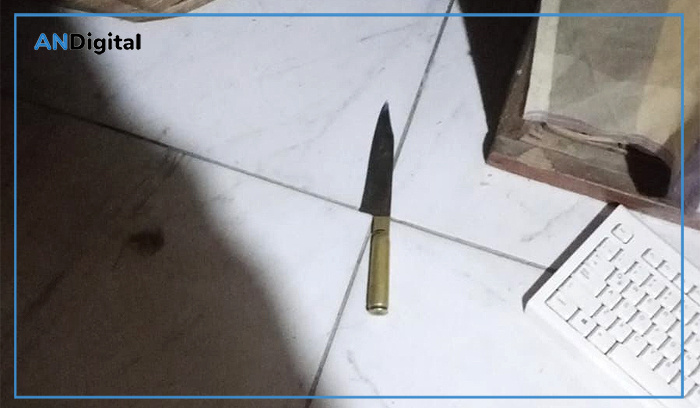 Durante la inspección de la vivienda los efectivos secuestraron un cuchillo tipo facón que se encontraba en el suelo de una de las habitaciones, presuntamente utilizado en el ataque, y además hallaron una escopeta rebatible cargada sobre una cama, lo que incrementó la gravedad del episodio.