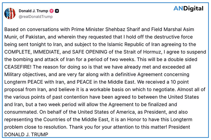 Según explicó Trump, la tregua está sujeta a que Irán detenga sus ataques con misiles y avance en una propuesta de negociación que fue presentada a través de mediadores internacionales, entre ellos Pakistán y Omán.
