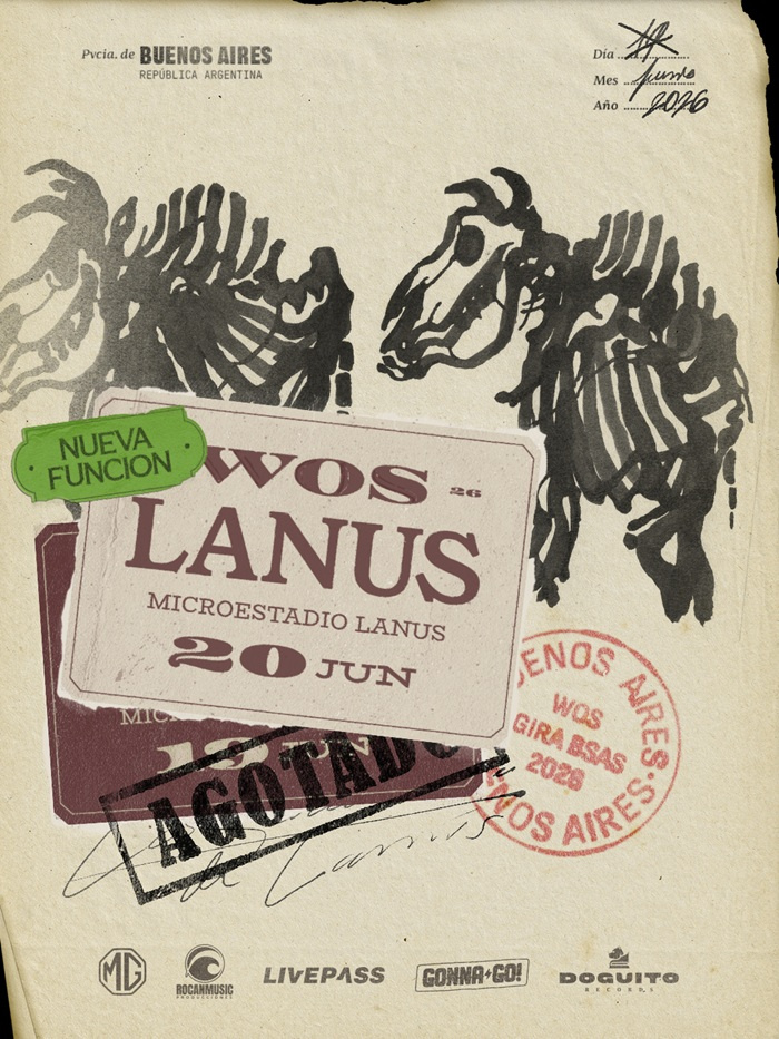 El anuncio llega en un gran momento para Wos, que hace menos de un mes fue el encargado de cerrar el Festival Buena Vibra en Buenos Aires, luego de haber finalizado 2025 con siete presentaciones masivas -seis en el Estadio Obras Sanitarias y una en el Hipódromo de La Plata- frente a más de 40 mil espectadores.
